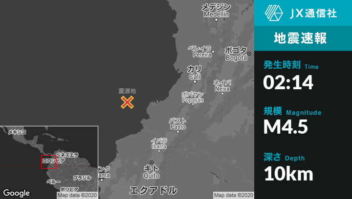 | 震源地 | コロンビアのFrancisco Pizarroから西北西111kmの地点 |