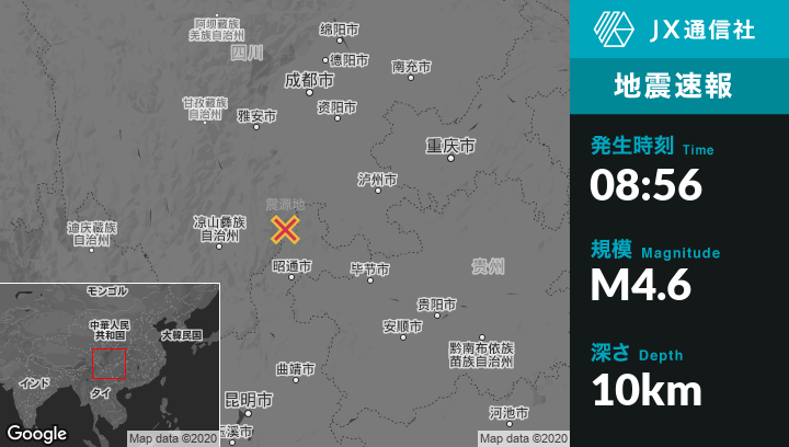 | 震源地 | 中国のJinchengから北北東2kmの地点 |
