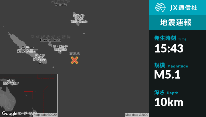 | 震源地 | ニューカレドニアのTadineから東南東135kmの地点 |