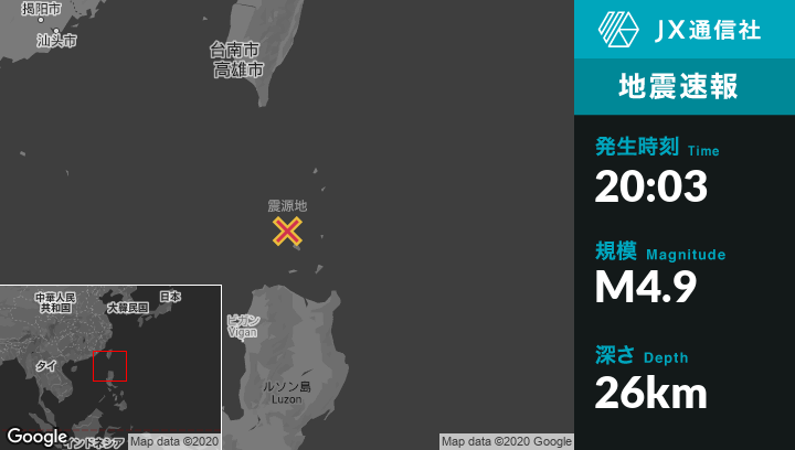 | 震源地 | フィリピンのSabtangから南西89kmの地点 |