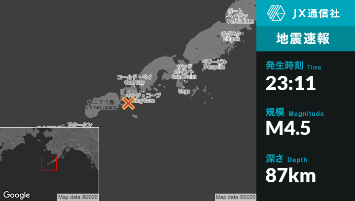 | 震源地 | アラスカのFalse Passから東26kmの地点 |