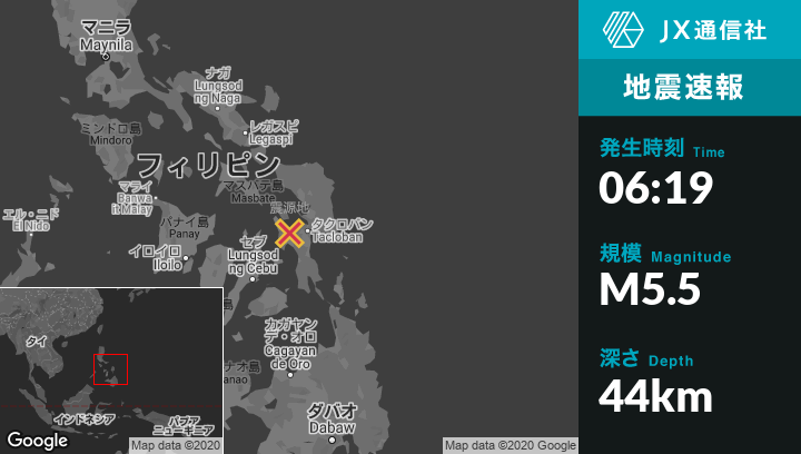 3月02日 06:19頃、フィリピンのCulasianから北2kmの地点でM5.5の地震がありました。