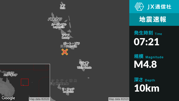 | 震源地 | バヌアツのPort-Vilaから西南西65kmの地点 |