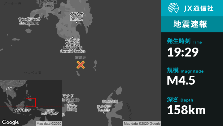 | 震源地 | フィリピンのSaranganiから南南東125kmの地点 |