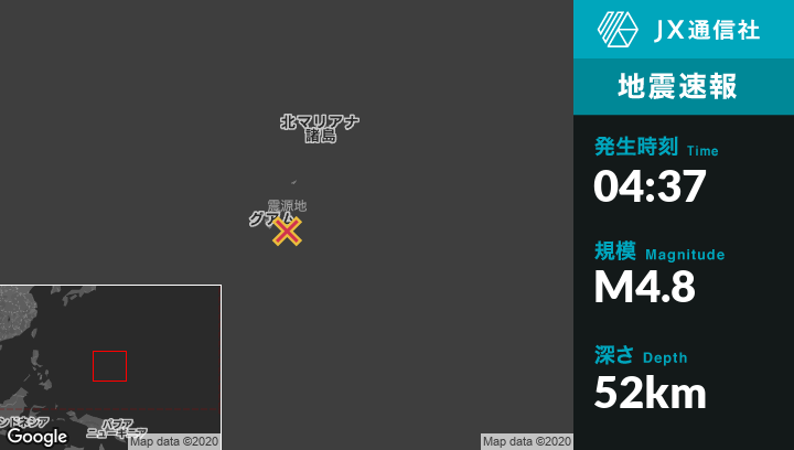 3月05日 04:37頃、グアムのYigo Villageから南東29kmの地点でM4.8の地震がありました。