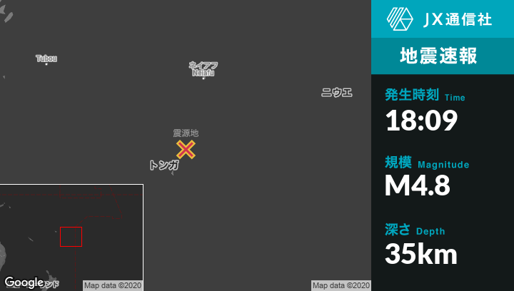 | 震源地 | トンガのPangaiから南南西89kmの地点 |