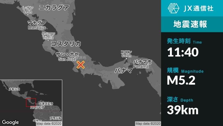 | 震源地 | コスタリカのBuenos Airesから東南東23kmの地点 |