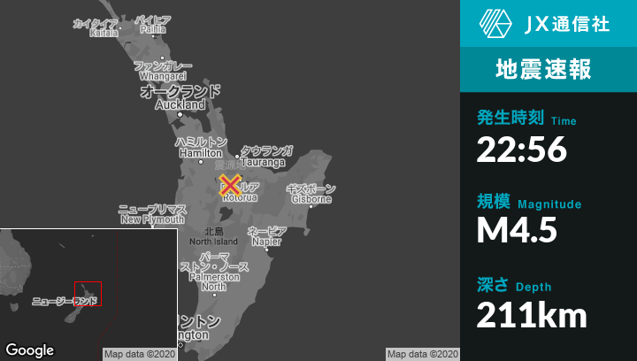 | 震源地 | ニュージーランドのTokoroaから北東13kmの地点 |