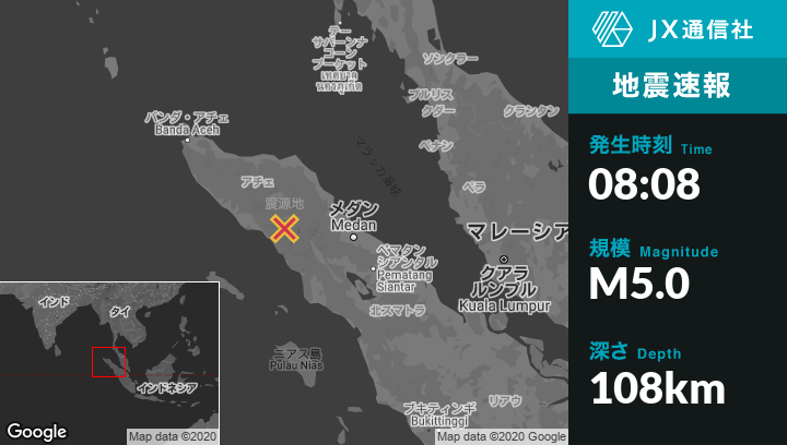 | 震源地 | インドネシアのLangsaから南西99kmの地点 |