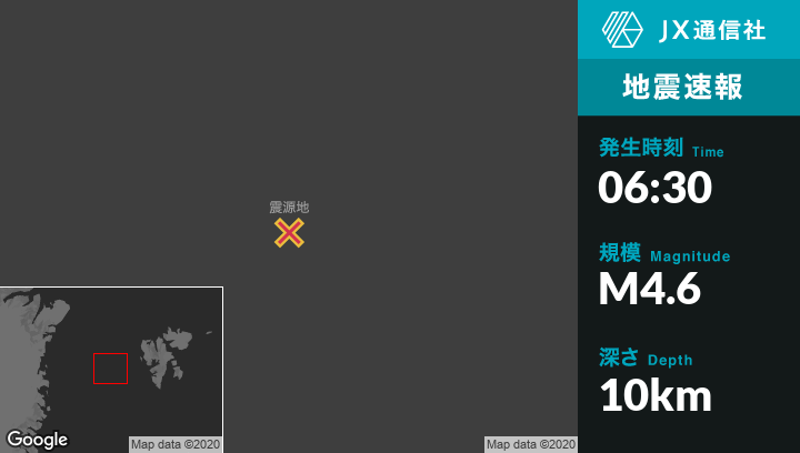 | 震源地 | スバールバル諸島とヤンマイエン島のLongyearbyenから西327kmの地点 |