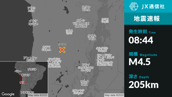 | 震源地 | チリのSan Pedro de Atacamaから北東112kmの地点 |