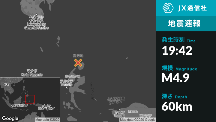| 震源地 | インドネシアのTobeloから北北東110kmの地点 |
