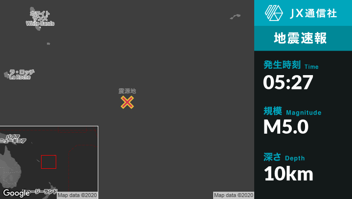 | 震源地 | ニューカレドニアのIle Hunterから東136kmの地点 |