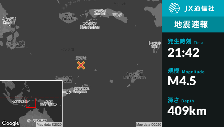 3月15日 21:42頃、東ティモールのDiliから北東303kmの地点でM4.5の地震がありました。