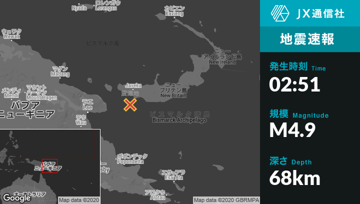 | 震源地 | パプアニューギニアのKandrianから西76kmの地点 |