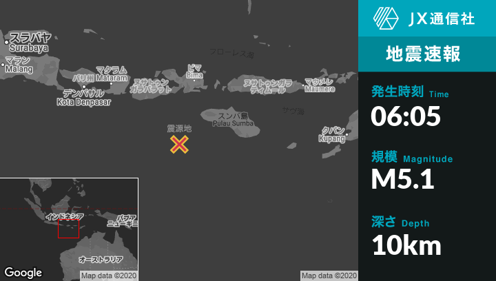 | 震源地 | インドネシアのPanenggoedeから南西115kmの地点 |