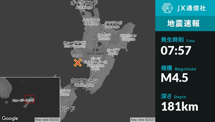 | 震源地 | ニュージーランドのPateaから西16kmの地点 |
