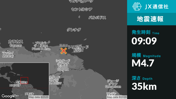 | 震源地 | ベネズエラのIrapaから南23kmの地点 |