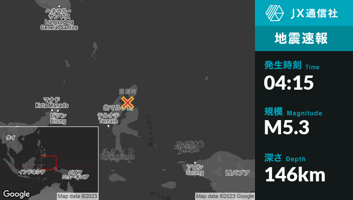 | 震源地 | インドネシアのTobeloから北東33kmの地点 |