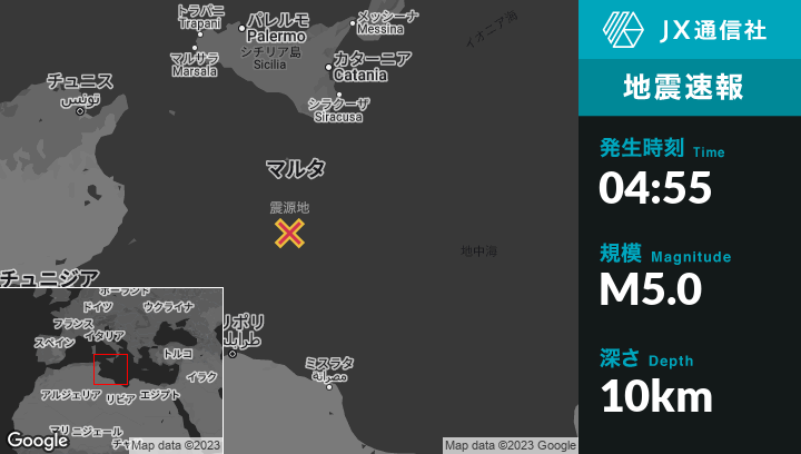 | 震源地 | マルタのŻurrieqから南97kmの地点 |