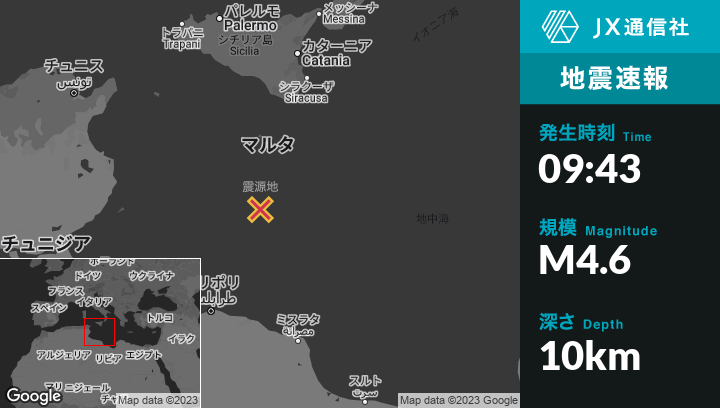 | 震源地 | マルタのŻurrieqから南111kmの地点 |