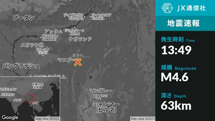 | 震源地 | インドのWāngjingから東35kmの地点 |