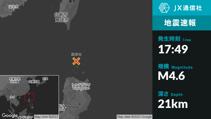 | 震源地 | フィリピンのBascoから南西90kmの地点 |