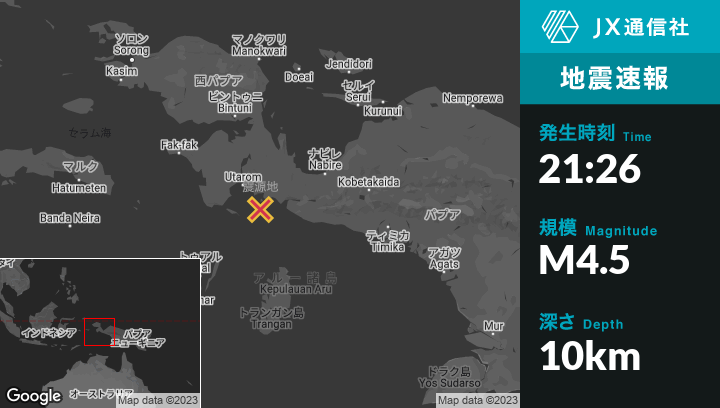 | 震源地 | インドネシアのNabireから西南西176kmの地点 |