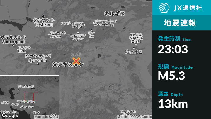| 震源地 | タジキスタンのKarakenjaから南南東48kmの地点 |