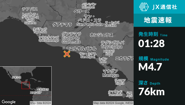 | 震源地 | エルサルバドルのAcajutlaから南西26kmの地点 |