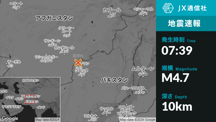 12月28日 07:39頃、パキスタンのChamanから北東41kmの地点でM4.7の地震がありました。