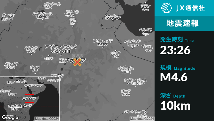 | 震源地 | エチオピアのMetahāraから南29kmの地点 |