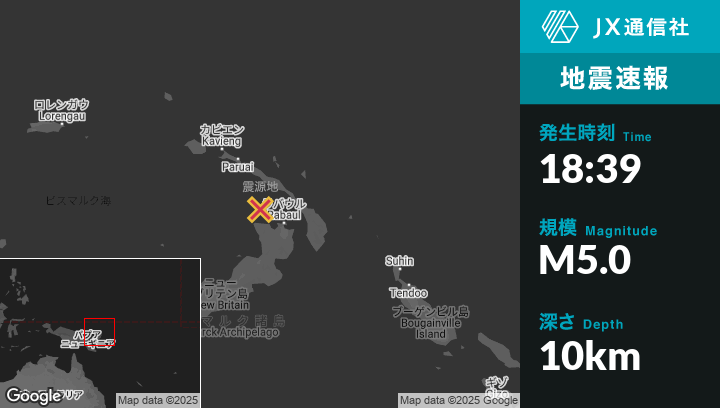 | 震源地 | パプアニューギニアのRabaulから北西75kmの地点 |
