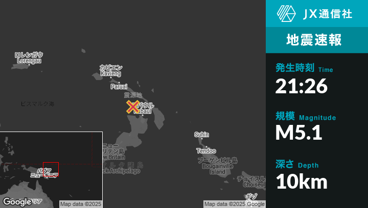 | 震源地 | パプアニューギニアのRabaulから北西71kmの地点 |