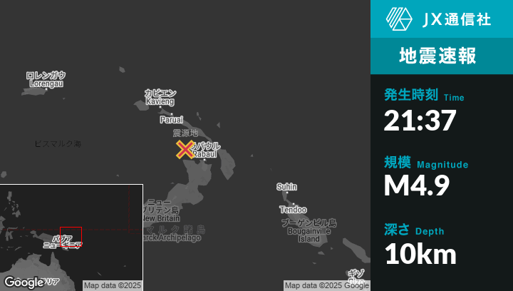 | 震源地 | パプアニューギニアのRabaulから北西81kmの地点 |