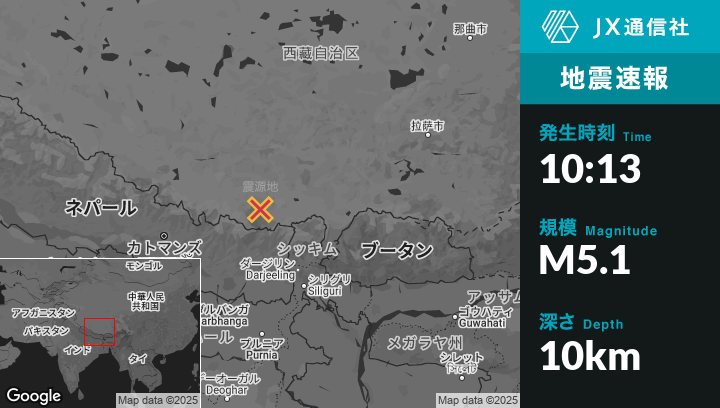 1月07日 10:13頃、ネパールのLobucheから北東72kmの地点でM5.1の地震がありました。