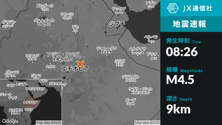 | 震源地 | エチオピアのMetahāraから北北東19kmの地点 |