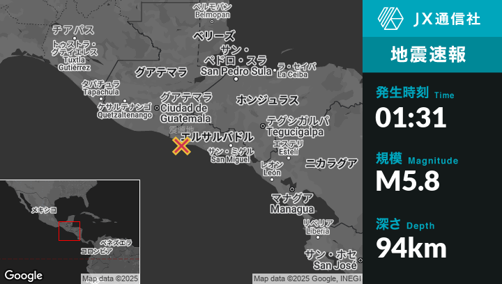 | 震源地 | エルサルバドルのAcajutlaから東9kmの地点 |