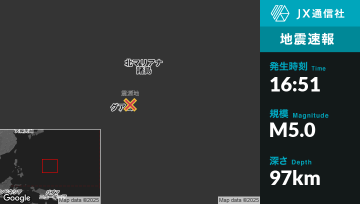 | 震源地 | グアムのYigo Villageから東北東31kmの地点 |