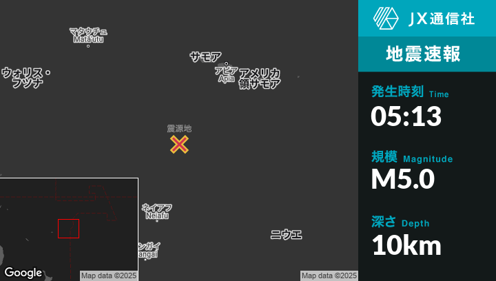 1月12日 05:13頃、トンガのHihifoから東南東61kmの地点でM5.0の地震がありました。