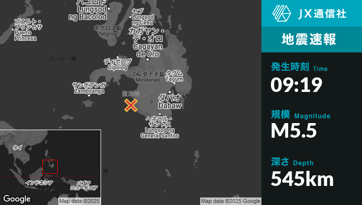 | 震源地 | フィリピンのBantogonから西北西16kmの地点 |