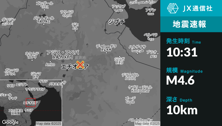 | 震源地 | エチオピアのMetahāraから東南東7kmの地点 |