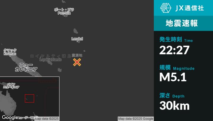 | 震源地 | バヌアツのIsangelから南145kmの地点 |