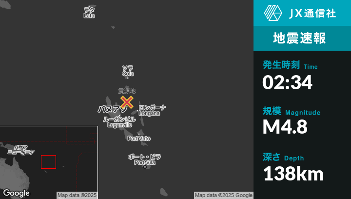 | 震源地 | バヌアツのPort-Olryから東北東51kmの地点 |