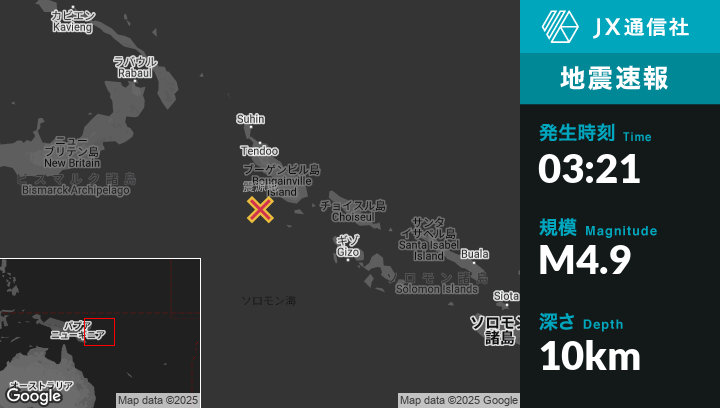 | 震源地 | パプアニューギニアのPangunaから南西89kmの地点 |