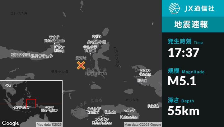 | 震源地 | インドネシアのTernateから南西107kmの地点 |