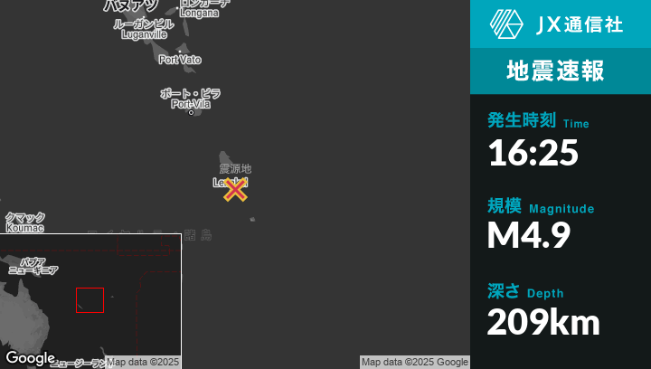 | 震源地 | バヌアツのIsangelから北北東18kmの地点 |