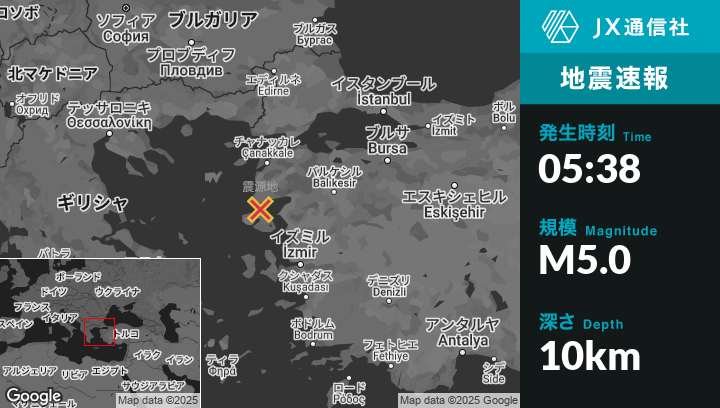 1月22日 05:38頃、トルコのBehramから南西6kmの地点でM5.0の地震がありました。