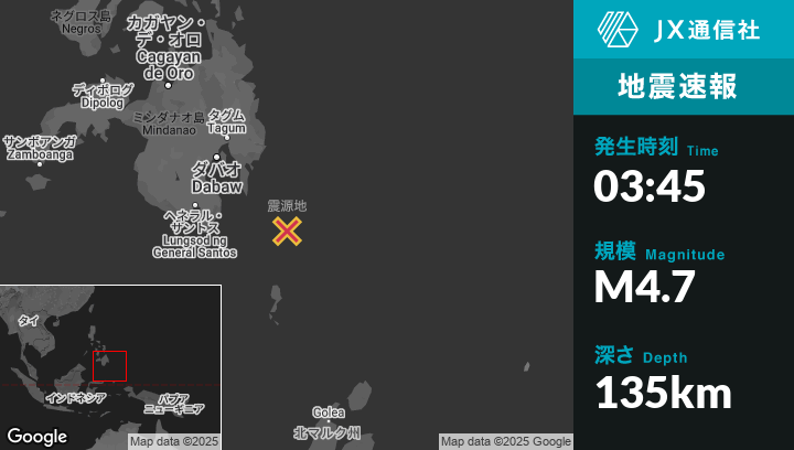 | 震源地 | フィリピンのPondaguitanから南東115kmの地点 |