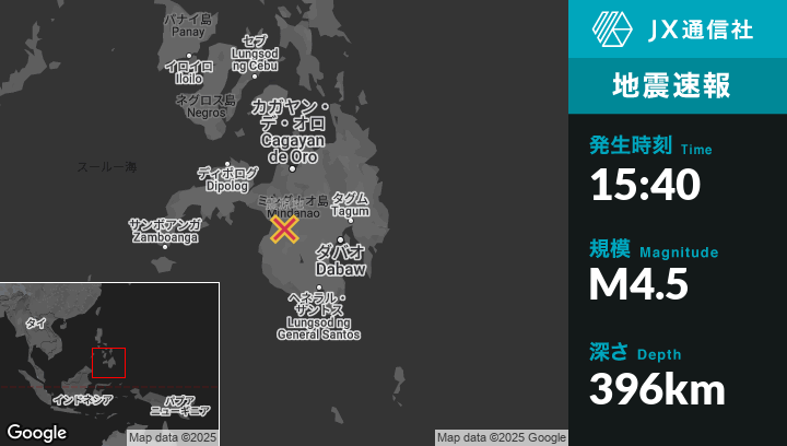 | 震源地 | フィリピンのNuyoから東南東6kmの地点 |
